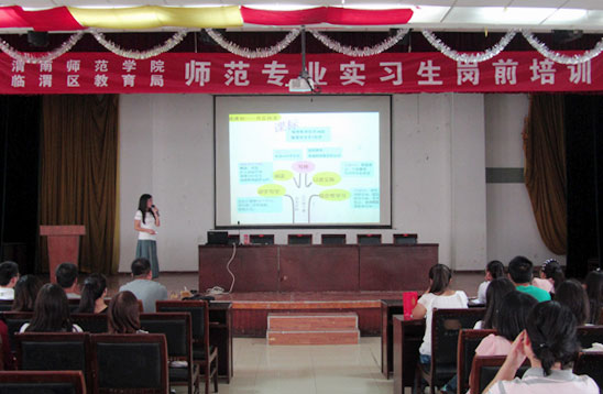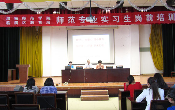 8月31日至9月1日,我中心与教务处、临渭区教育局联手,对在临渭区各镇初中、中小学顶岗实习的155名实习生进行了岗前培训,邀请了临渭区省市级教学能手和市级“说课标说教材”优胜者,在我校和朝阳路学校对实习生进行了以教学常规、教研能力和课堂教学等为主要内容的岗前业务培训。